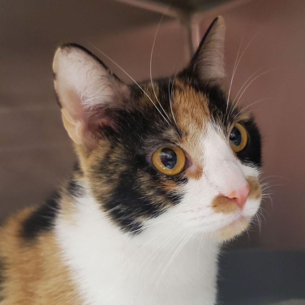 Nataliya is a 5-year-old short-haired calico cat. She showed up at a local vet hospital with a broken leg. The leg is now healed, and she’s looking for a home where she can run around and spread holiday cheer.