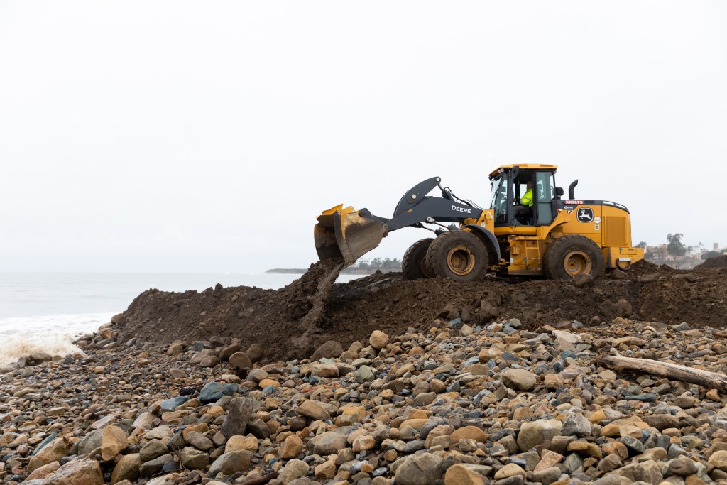 Since January 11, Santa Barbara County has trucked stuff from the Montecito debris basins to Goleta Beach Park. An estimated 500,000 cubic yards of dirt, rock, trees, and brush are estimated to be in the basins, and the removal, sorting, contamination testing, and truckloads amount to about $50 million in costs.