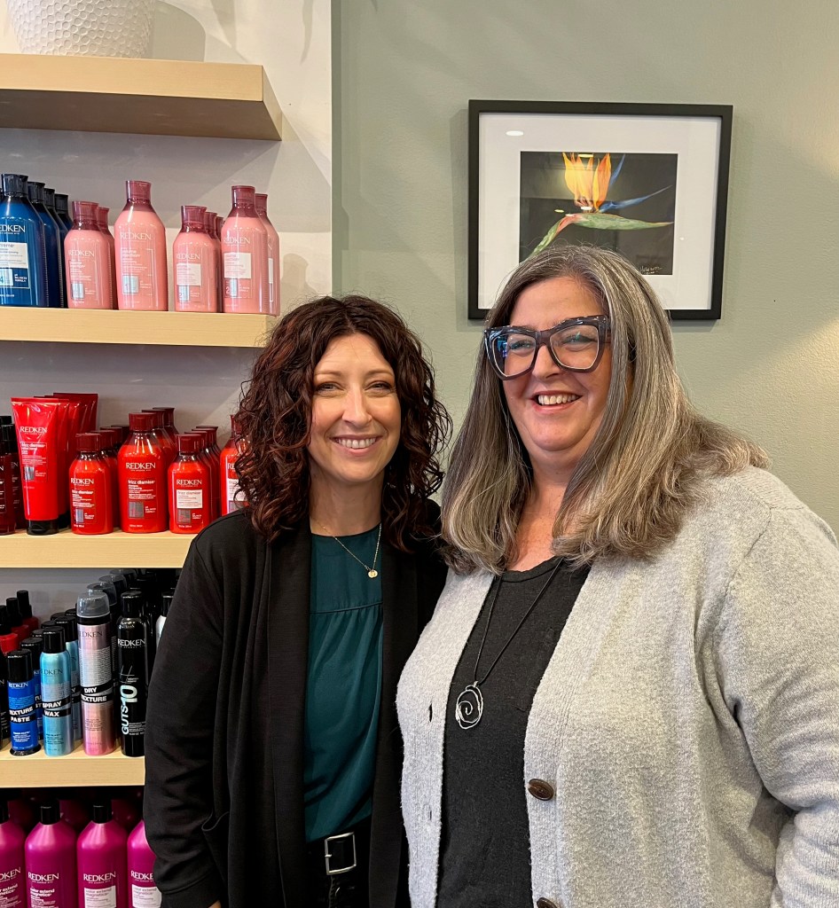 Salon Patine owner Blair Jackson (left) and the author with her straight hair | Credit: Courtesy