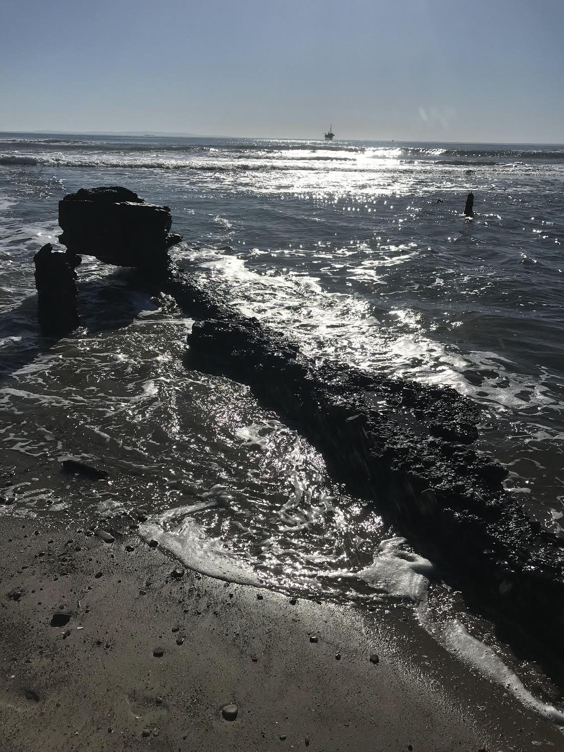 Here are two photos of the same object: one taken last year and one this year, which highlights the amount of sand that has disappeared. What lies beneath the sand and ocean? Plenty, it would seem. Plenty of sharp, rusted remnants of the that remnants of the Ellwood Oil Fields from the 1930s. The oil field was attacked on February 23, 1942: the first time the U.S. mainland had been attacked by a foreign nation since 1812.