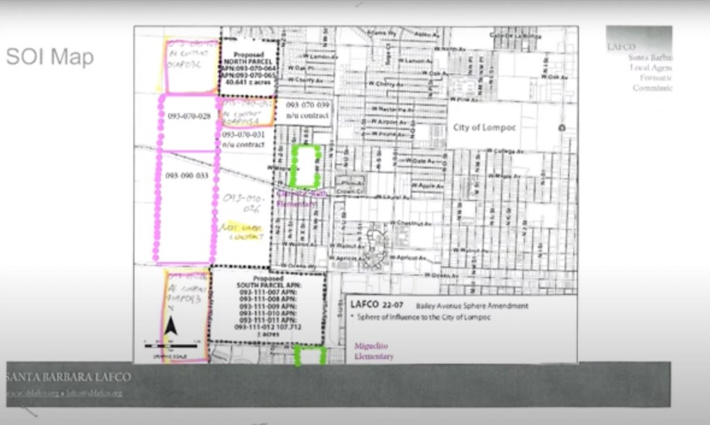 In addition, she noted, school lands are cheaper next to ag, which is the same situation in Guadalupe, Buellton, and Santa Maria. “Should LAFCO encourage displacing all ag near schools?”