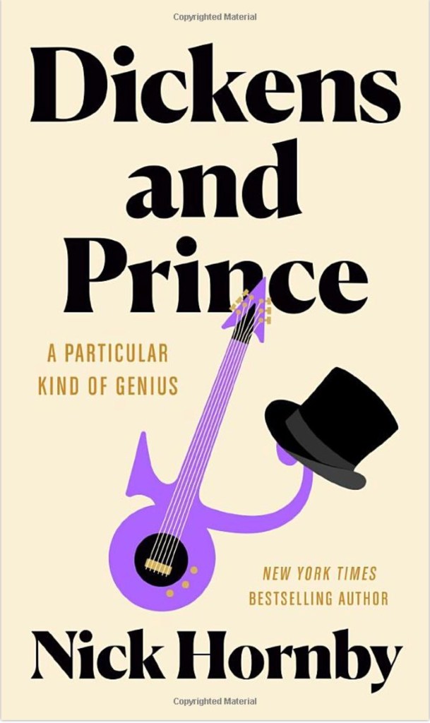 The cover of Nick Hornby’s Dickens and Prince: A Particular Kind of Genius features a Victorian top hat hanging on the tip of the penis-like appendage curling from the bottom of Prince’s famous purple guitar. The jacket design is by Vi-An Nguyen, but Hornby must have been pleased to have been gifted with an image that so perfectly encapsulates his unlikely but likable exploration of the life and work of two of his heroes.