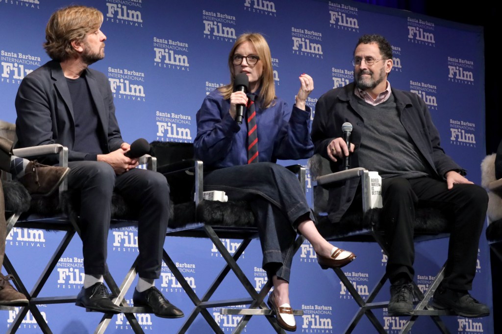 (L-R) Ruben Östlund, Sarah Polley, and Tony Kushner speak at the Writer’s Panel during the 38th Annual Santa Barbara International Film Festival at The Arlington Theatre on February 11, 2023 in Santa Barbara, California. (Photo by Rebecca Sapp/Getty Images for SBIFF)