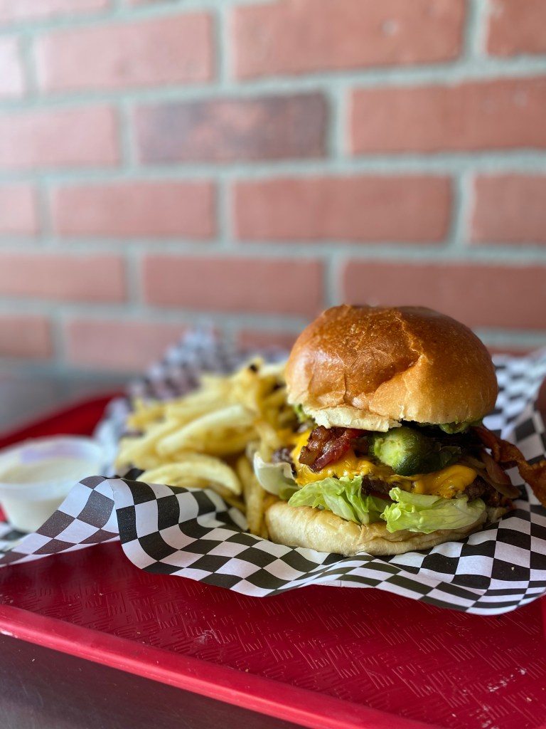 This year, Ransone decided to do a classic take on the popular smash burger, but bigger, with its Get Smashed Burger. General manager Javier Orta describes it as a “double” style, with two half-pound prime-beef patties smashed on the grill, each with a slice of melty American cheese, stacked high on a toasted brioche bun with mayo, fresh tomato, green leaf lettuce, slices of red onion, and a pair of thick crinkle-cut pickle chips.