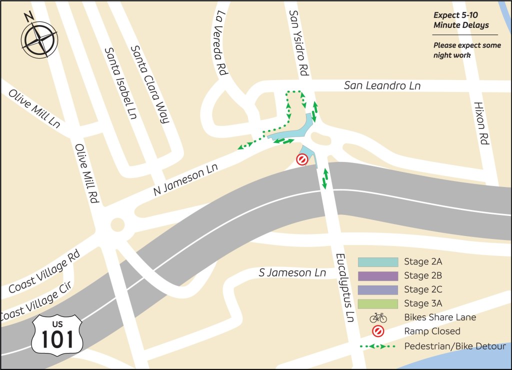 Please note:  consecutive ramps in the same direction will not be closed at the same time (unless where noted) to allow drivers to use a ramp before or after a closure. To view timelines, detours, and maps, please visit http://www.SBROADS.com and select the project segment.