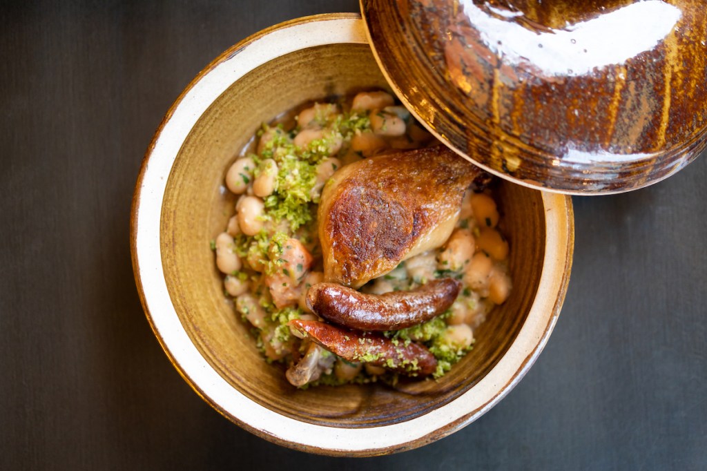 As to the vibe, think Parisian style pub with eclectic, elevated, from-scratch California cuisine in a modern classic design. An ever-changing farmers’-market-driven menu features classics and favorites such as Santa Barbara rock crab beignets, a bahn mi French dip, Channel Island ling cod bacalao with black truffle, and a 48-day dry aged bavette steak.