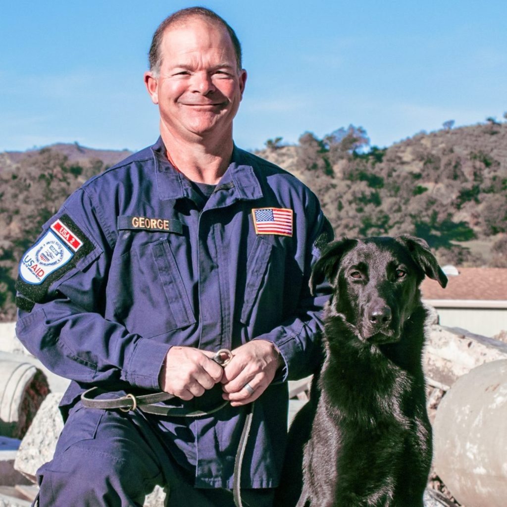 Bob George and his dog, Shadow, were deployed as part of the L.A. County Fire Department’s Urban Search and Rescue Team (USAR), ready to seek out survivors buried beneath the rubble.