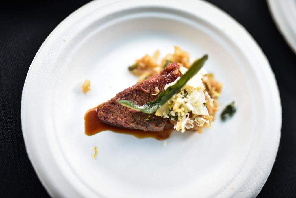 That said, the tastiest, and most complete dish, at least by my measures, had to be Convivo’s miso short rib with brown butter risotto and crispy black sage gremolata. I spent a few minutes listening to Chef Peter McNee explain how he made the cube of meat so structurally sound on the outside yet silky-soft once chewed, another bit of textural mystery for me. It involved brining and smoking and braising and more than I could follow, at least being a few sage-infused beers deep at that point. That’s why it’s best to leave this up to the pros.