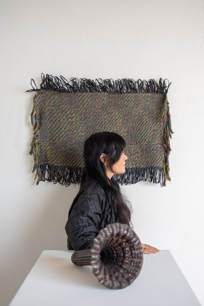 A solo exhibit by Sarah Rosalena opens on April 9. She is a UCSB assistant professor of art in Computational Craft and Haptic Media, and a recipient of a Carolyn Glasoe Bailey Foundation art prize. This is her first institutional solo exhibition, and she works in a very interesting intersection of Indigenous knowledge and space-age technology. Her works feature large-scale textiles woven with artificial intelligence technology. The show is called Pointing Star, for it references an eight-sided star shape or symbol that is found in every culture in Turtle Island (the name for Earth or North America, used by some Indigenous peoples).