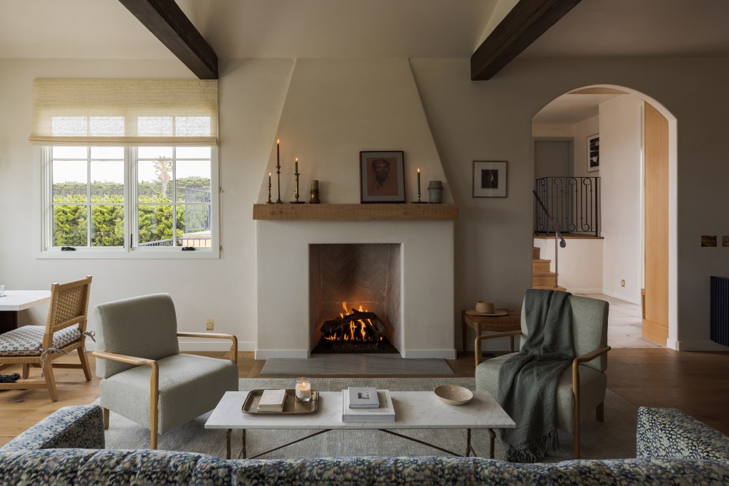 The cozy fireplace at Villa Mara Carmel | Credit: Courtesy