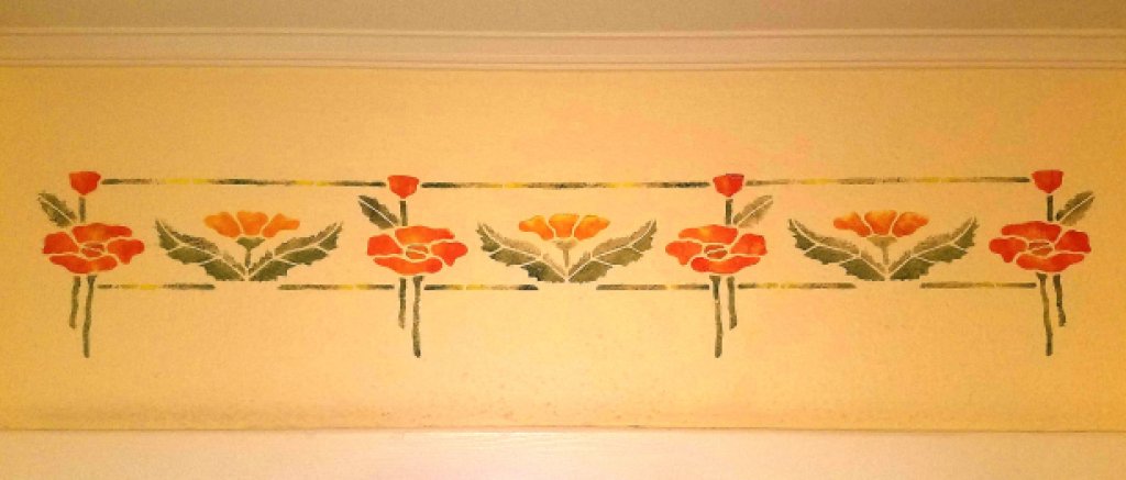 Paul and Mary Genis bought this home in 2018. They felt that their existing furniture was not compatible with this home’s Craftsman style, so they bought new furniture to match the home’s style. They asked local artist Judy Nilsen to stencil a period-appropriate floral border in the home’s main hallway. The Genises enjoy the home’s downtown location and the spacious wraparound porch, which is ideal for entertaining or just lounging and admiring the pine trees.