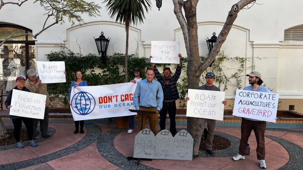 “I fish out in the channel almost every single day. If these fish farms are built, it would directly affect my job of putting food on Californians’ plates,” said Eric Hodge, a local commercial fisherman, during last week’s protest.