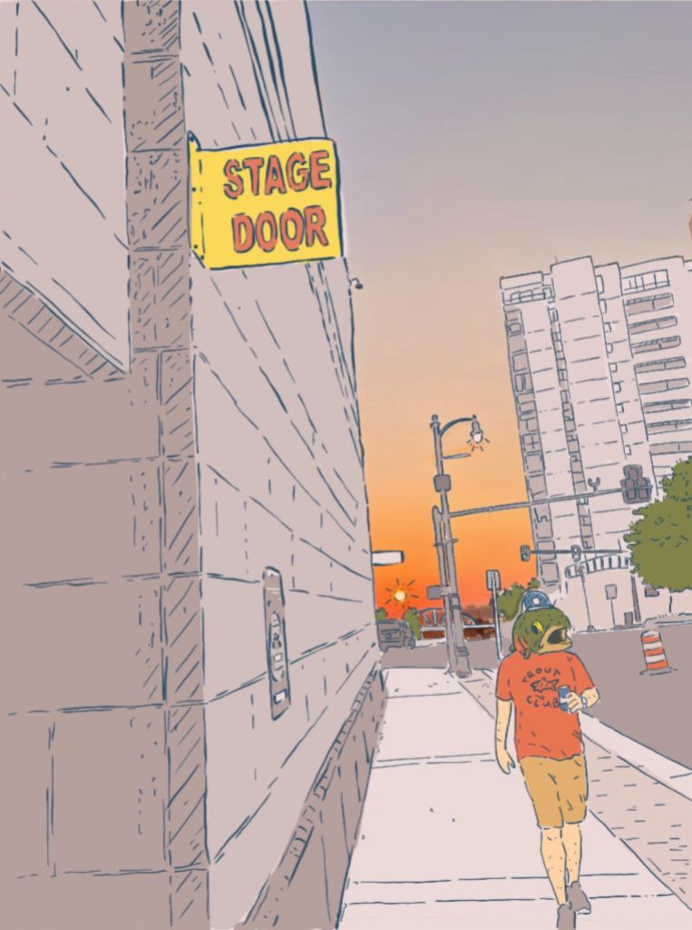 Beyond friendship, Trout Club’s growth as a band is evident, particularly in their new single. A culmination of Hernandez-Black’s inner thoughts, “Stage Door” captures the feeling of realizing your best friends from elementary school are suddenly twenty-somethings with nine-to-fives. “Do you remember going to Astro Camp when we were in 6th grade?” Hernandez-Black calls out to his bandmates in “Stage Door,” recalling when he was told that the sun would one day implode. “That memory from childhood really stuck with me and sparked the whole [way] of thinking that led to this song,” Hernandez-Black says. “I didn’t plan on writing a song about depression, mortality, and existentialism, but it just kind of worked out that way with all these bits and pieces of songs that I’ve written throughout the year.”
