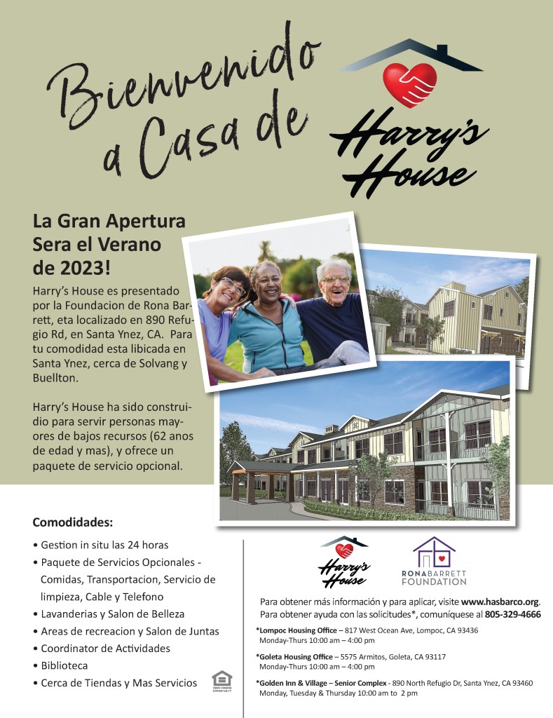 The Housing Authority of the County of Santa Barbara has announced it will be accepting Pre-applications for Harry’s House Development to establish a waiting list, effective April 18 at 10:00 a.m. The waiting list will close May 17, 2023 at 4:30 p.m. Harry’s House, presented by the nonprofit Rona Barrett Foundation is an affordable senior development for 62 years and older, consisting of 60 studio apartments with limited kitchen facilities. Harry’s House is located in Santa Ynez and is scheduled to open this summer.
