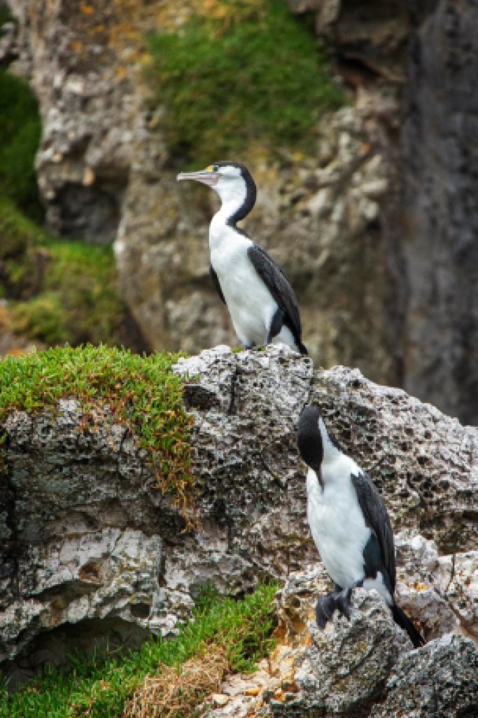 To the south, across Foveaux Strait, we explore Stewart Island, called Raikiura in Māori, which references the “glowing skies,” of aurora australis. This small island is the above-mentioned mythical anchor holding the South Island in place. Rakiura National Park, created in 2002, covers 85 percent of the island. The first Polynesian wayfarers and migrants who arrived in the South Island and Rakiura 800 years ago encountered heavily forested islands, where they hunted the abundant 12 foot tall, flightless Moa birds to extinction in less than 100 years. Tastes like chicken and just one can feed a village! Their feathers and skin were made into clothing, and bones used for fish hooks, tools, and ornament. The moa’s main predator, other than humans, was the massive-clawed Haast eagle that lived from the Pleistocene, 2 million years ago, dying out about 600 years ago as their favorite food source dwindled.