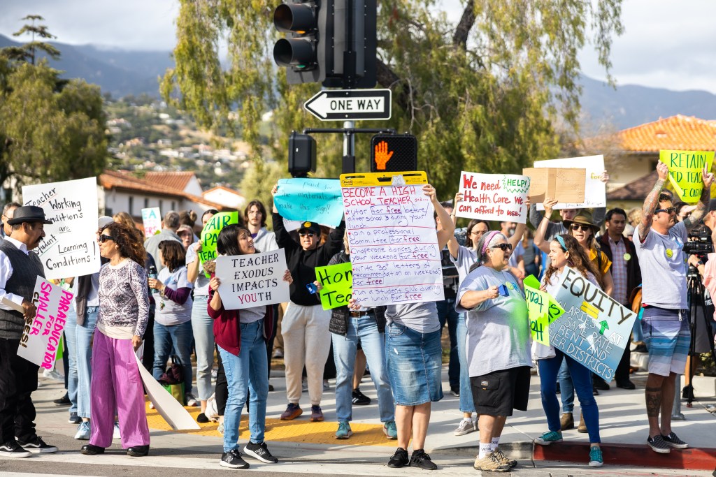 “Fair pay, teachers stay” was the rallying cry of nearly 200 teachers and supporters lining the streets outside the Santa Barbara Unified School District office on Tuesday 5/9, a precursor to one of two major issues brought before the Board of Education during their regular meeting that evening.