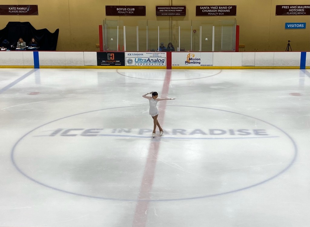 More than 100 skaters, representing 10 different Southern California rinks, traveled, most alongside their guardians, to Goleta last week to compete in Ice in Paradise’s first-ever open figure-skating competition. By 10 a.m., the lobby of the rink had transformed into a dressing room — duffel bags were scattered the floor, and hairspray filled the air as parents put the finishing touches on their children before they took the ice.