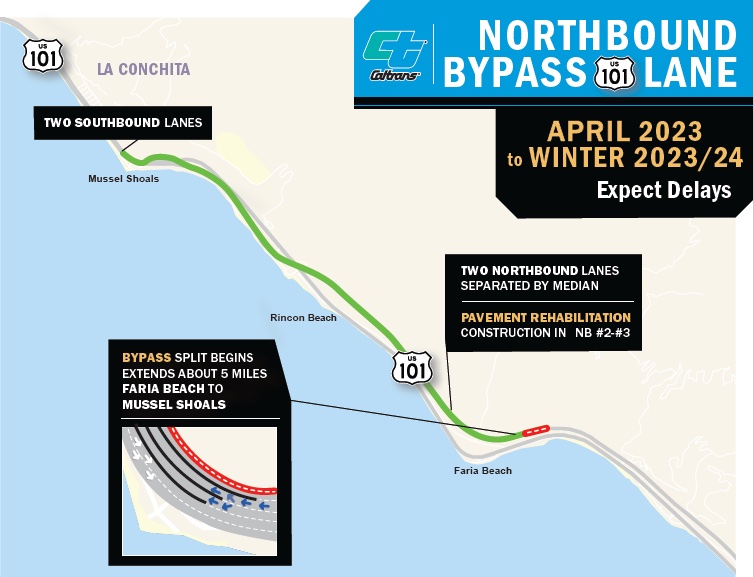 REMINDER: Northbound U.S. 101 from Faria Beach to Mussel Shoals features two