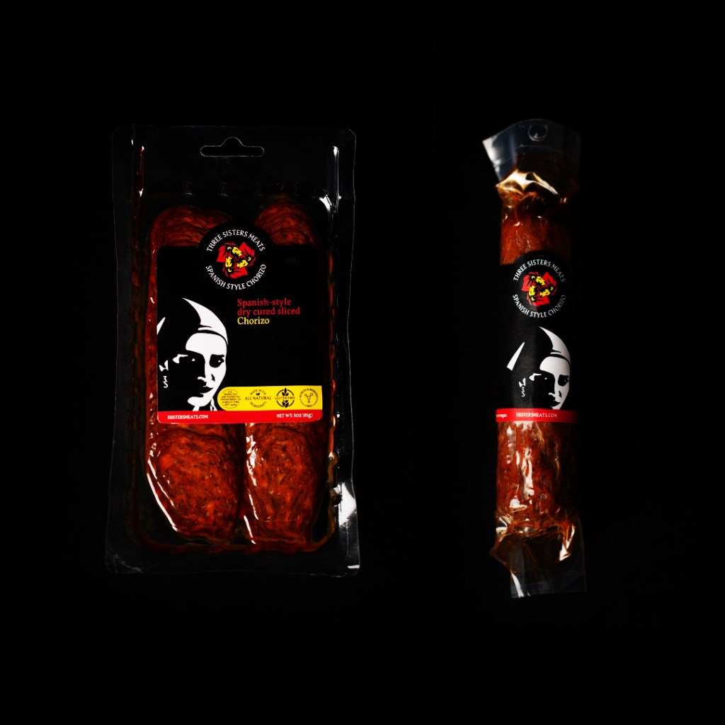 “We are authentically Spanish but made in America,” explained Fernández, who named the brand after his mother and her two sisters. “This chorizo is a way to honor and pay respect to my family and its culture.” His parents still live near where he grew up in College City, home to fewer than 300 folks about an hour north of Sacramento.