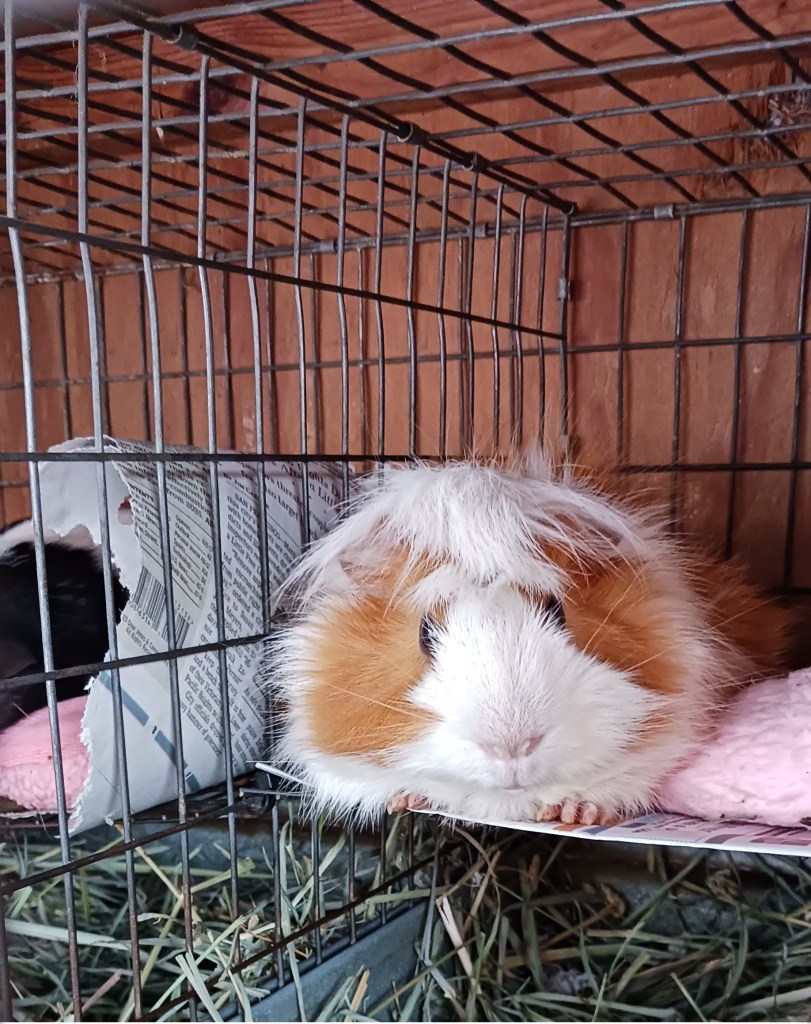 If you want a guinea-pig with extravagant good-looks and a great personality then Boy-Boy is for you! He is also friendly, relaxed, and confident. Boy-Boy has the swirly locks of the Abyssinian breed of guinea-pig. His coloring is a lovely reddish-brown and white with dark, expressive eyes. Come to BUNS and let him charm you in person!