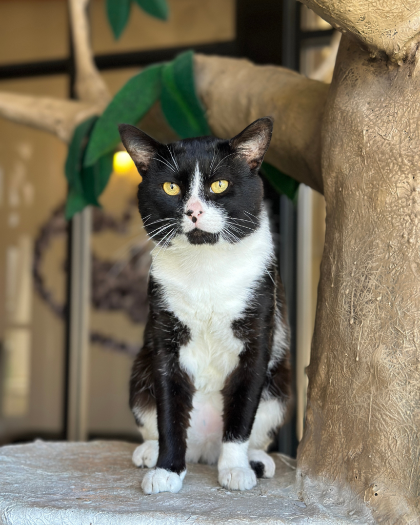 My name is Sylvester, and I am a two-year-old Domestic Shorthair cat. While I may be named after a mischievous cartoon character, I am the farthest thing from a troublemaker. I am very easygoing and mellow. I spend most of my day napping on my tower or people-watching out my window. I am independent and would make an excellent cat for anyone who works long hours or has a busy day-to-day schedule. Then at the end of a long day, we can curl up on the couch together to binge your favorite TV show!