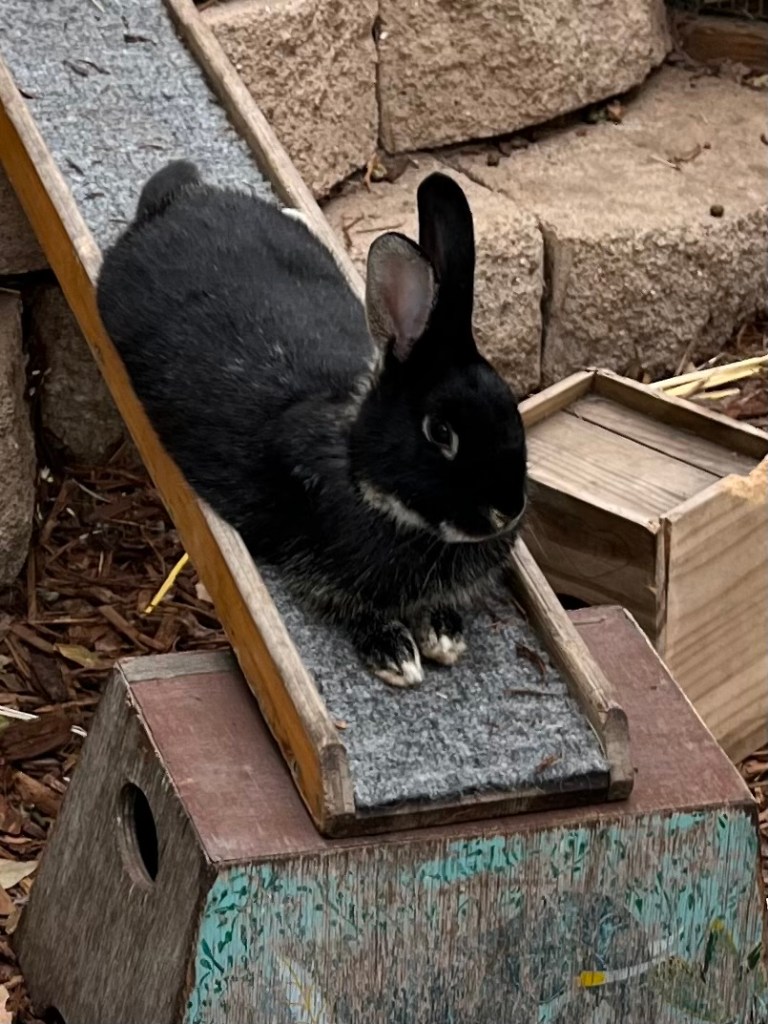 This little fellow is a silver martin breed of rabbit. Hotshot is the “whole package!” He is sweet-tempered, has beautiful litter habits, and is smallish with dashing good looks. He is also very social and active, but not “overactive.” He would be a perfect house-rabbit for a first-time bunny adopter or for the very bunny-wise adopter.
