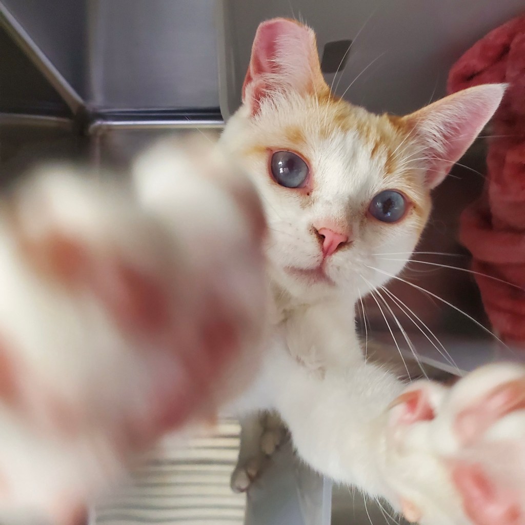 Meringue is a three-year-old flame point Siamese female cat. Meringue came to us from a local inn after she refused to pay for her suite. She is full of energy and is looking to check into an active home to keep her busy.