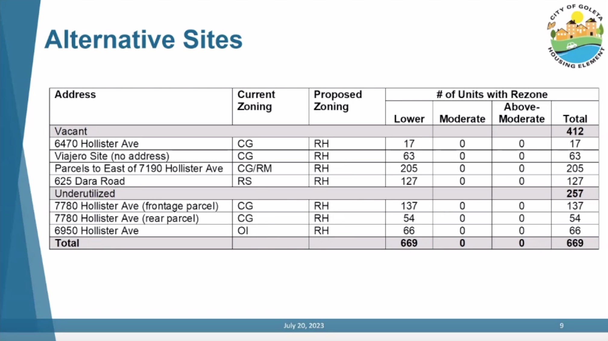 The impetus for both meetings was the state Housing and Community Development department’s pushback on Goleta’s proposed rezones for lower-income homes, which centered around the question of whether the property owners were interested in developing their land. In an effort to accommodate the state and get the city’s Housing Element closer to certification, planning staff had eliminated problematic parcels by 637 lower-income units; the city needs to reach the state’s required number of 1,006 homes.