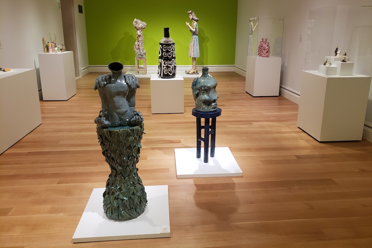 From the younger set of ceramic artists, the selection includes two previously not shown on gallery walls, Woody De Othello’s “underneath the surface changes occur that we cannot bear witness to,” and Seth Bogart’s “Cheeks.”