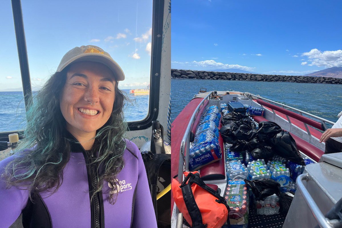 On Sunday, Peyton volunteered with a group of residents to deliver supplies on a snorkel charter boat to Lahaina.
