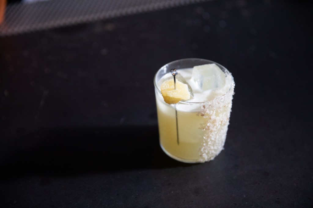 Most eye-popping, however, was Into the Sky, where a fluorescent blue blend of tequila, orgeat, makrut lime, and blue curacao rest below a cloud of smoke suspended in a bubble that the customer pops. “It’s definitely a show-stopper,” said Hardin. “Everyone looks over and wants to try the bubble.”