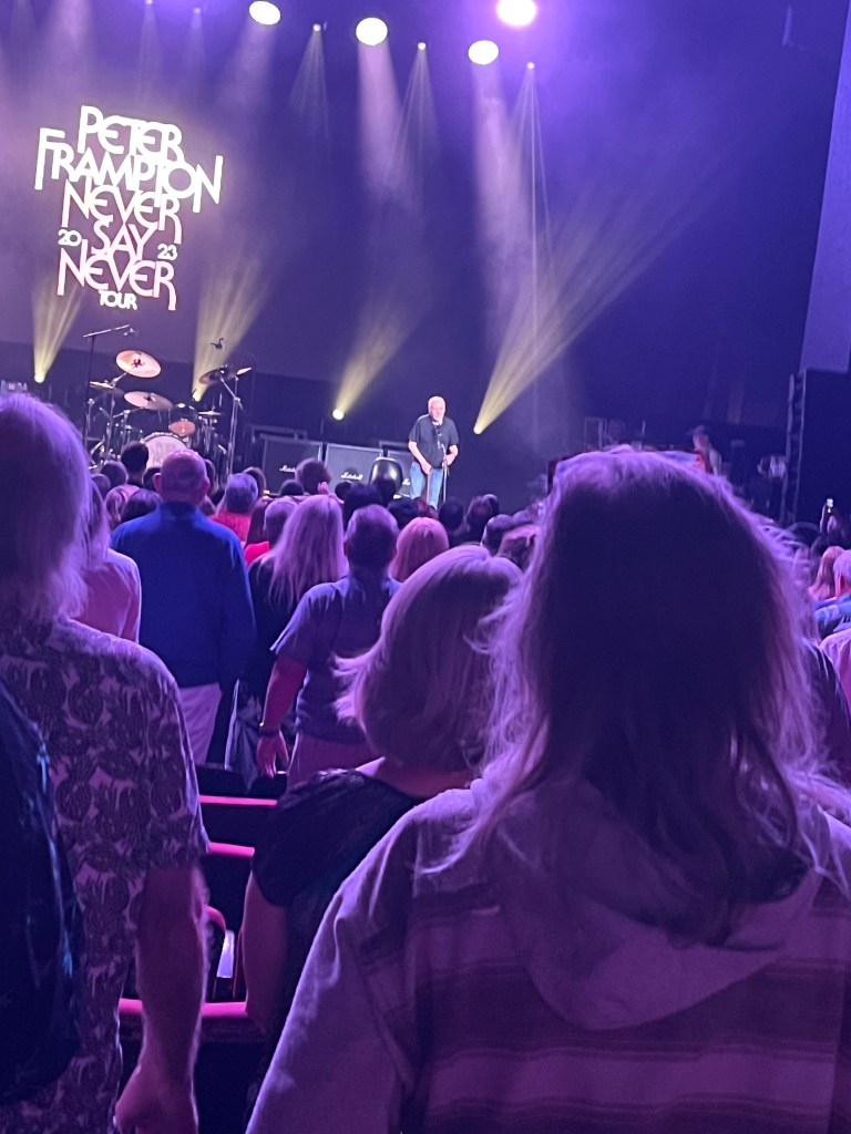 A diagnosis of the degenerative disease inclusion-body myositis had Frampton announcing a farewell four years ago, but as the aptly named 2023 Never Say Never Tour clearly indicates, where there’s a will, there’s a way — to play. And play he did — though seated for the entire set, almost three hours, Frampton gave an energetic, triumphant, enthusiastic, and endearing performance that had the sold-out crowd up and out their seats dancing — and playing like teenagers — for much of the evening.