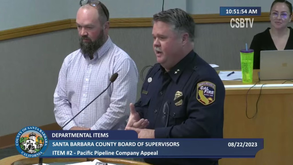 The term “best available technology” comes from Assembly Bill 864, which Supervisor Das Williams wrote after the Refugio spill when he was an assemblymember in 2015. His presence chairing the meeting did not go unexploited by Exxon’s attorney, Dawn Sestito, who mentioned no less than a half-dozen times that Willliams had written the very rule up on appeal today — the requirement for safety valves on pipelines in environmentally sensitive coastal areas.