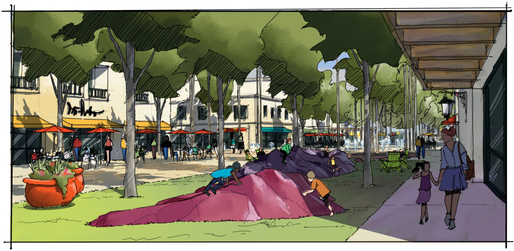 The main takeaway from the Create State concept was the development team’s plan to break State Street into three distinct districts: the Arts District (from Sola to Carrillo), the Civic Core (Carrillo to Ortega, including De la Guerra Plaza and Paseo Nuevo), and Old Town (stretching from Ortega all the way to the Highway 101 undercrossing, connecting downtown and the Funk Zone/waterfront).
