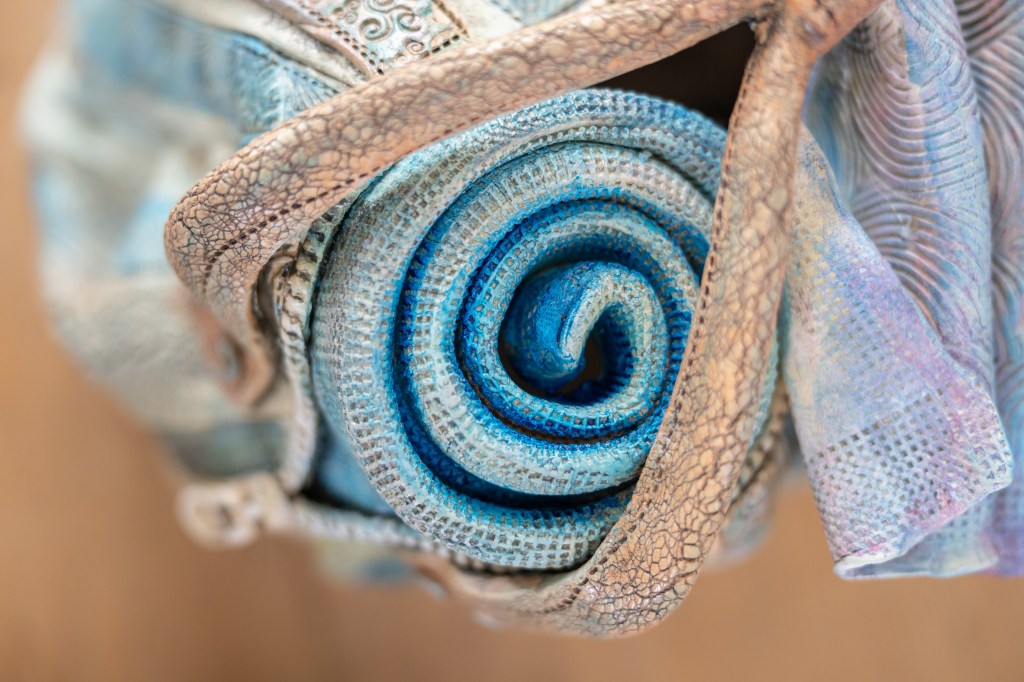 This interactive element is what Horowitz searches for in his pottery, seeking to create a reaction from the viewer. “Most people are not going to have too much to say about an object that looks exactly the way it’s supposed to look,” he told me. “You’re not going to pick up a cereal bowl and inspect all the sides of it.” But while his leather series provokes surprise and curiosity, more recently, Horowitz has attempted to provoke deeper feelings, creating a series of pieces titled War and Peace in reaction to the ongoing Russia-Ukraine war.