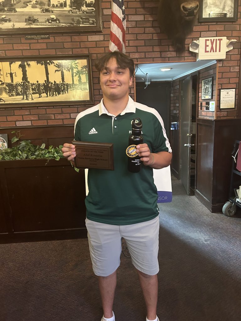 Silke Leonard of Carpinteria High girls’ tennis and Abel Renteria of Santa Barbara High football received SBART Athlete of the Week awards at Monday’s press luncheon.