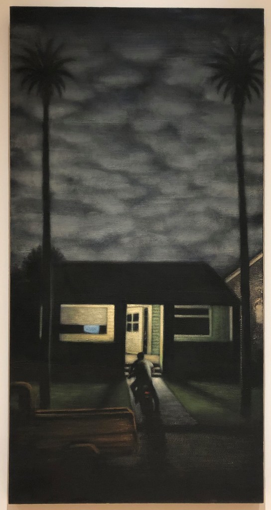 What grabbed me, besides the subject Kermit, was the dappled light, the determination on Kermit’s face to peddle through any circumstance to meet his goals and the collective knowing that ‘we will find it, the rainbow connection.’ There’s a sense that Kermit is riding outside of his world into the unknown, an adventure not just for himself, but for his community and audience. The collision between the inner world and the outer in a single artwork is what connects each piece in the Inside/Outside gallery. The external scene informs the inner world, whether real, fictional or in between.