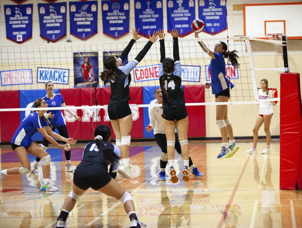 After dominating set two, San Marcos found itself in a dogfight in the third and final set as a kill by Buena’s Taylor Beller gave the Bulldogs a 21-20 lead.