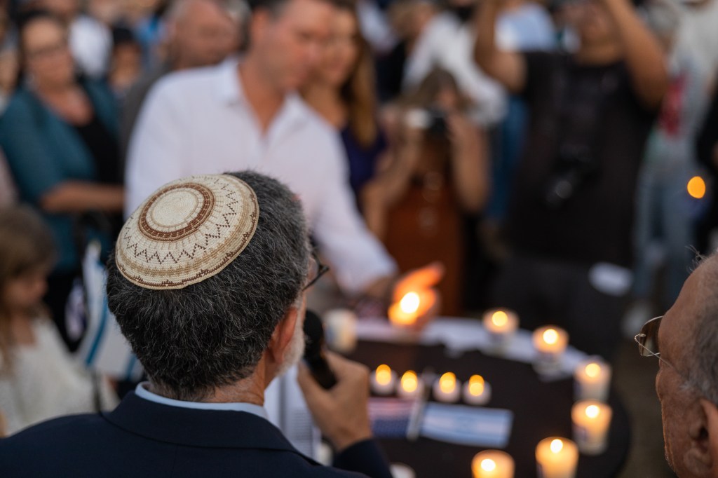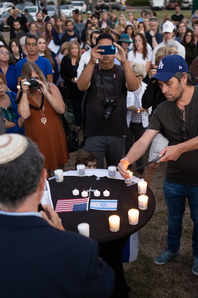 The Santa Barbara community gathered to remember those who died in Israel on October 7, lit candles, and prayed at De la Guerra Plaza on October 15. | Credit: Ingrid Bostrom