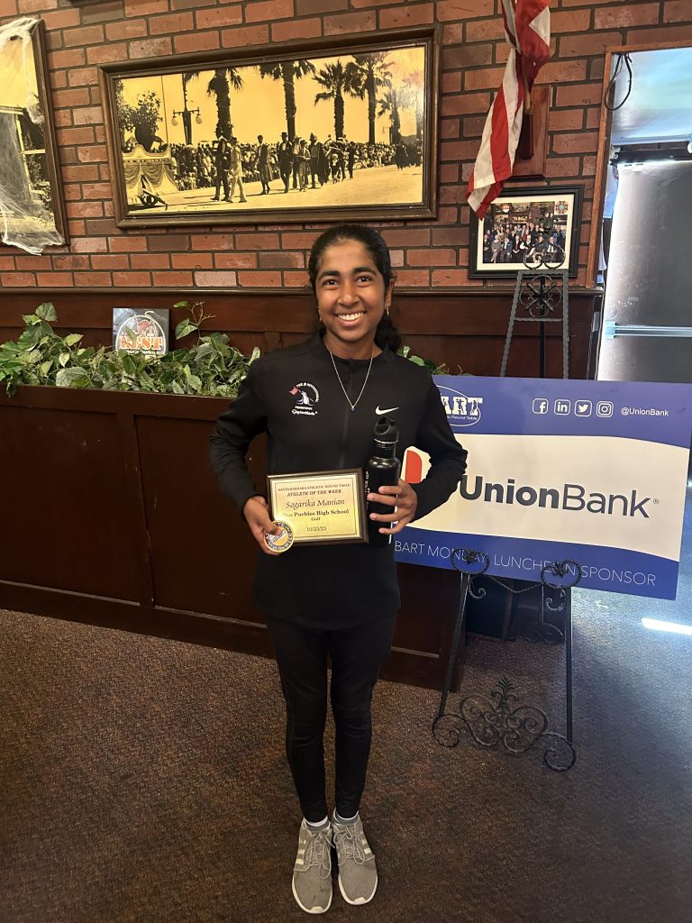 Sagarika Manian of Dos Pueblos golf shot a 77 at the par 72 Soule Park course and captured her third consecutive Channel League Individual Championship. As a result, Manian was honored as SBART Female Athlete of the Week at Monday’s press luncheon.