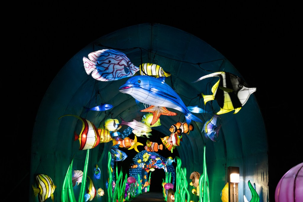 “It’s almost a complete change up of all the lights,” said board chairperson Derek Shue at a preview event on November 9. The excitement in the air was palpable as we checked out the winter wonderland of thousands of handcrafted, silk-covered lanterns aglow with more than 50,000 LED bulbs alighting animals and nature scenes of wild places from around the world. It’s all quite mesmerizing, but the underwater tunnel of fish, coral, and other stunning creatures really must be seen to be believed. I couldn’t stop humming The Little Mermaid’s “Under the Sea” as I walked through.
