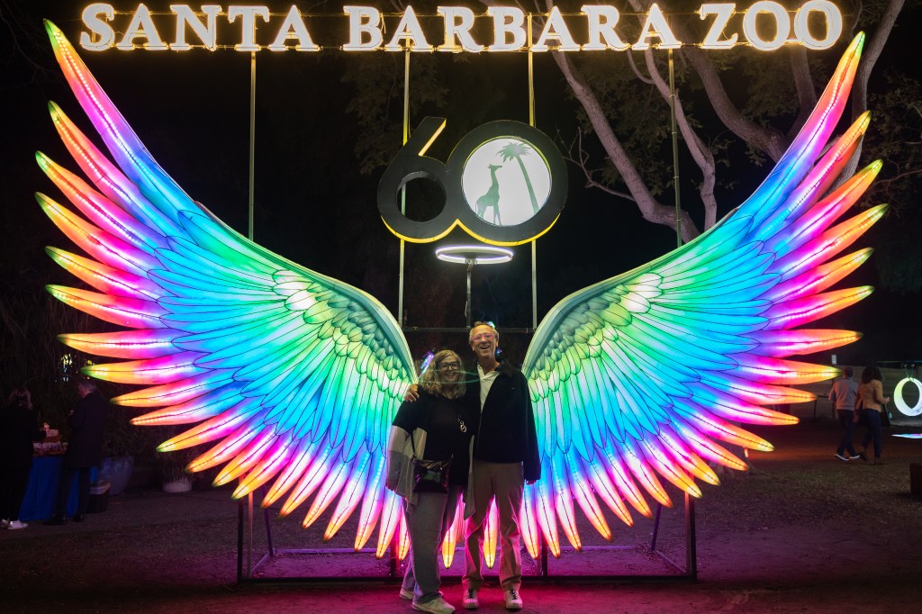 A pair of angels: Leslie Dinaberg and her husband at ZooLights at the Santa Barbara Zoo | Photo: Ingrid Bostrom