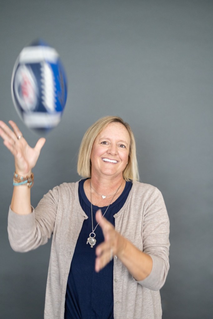 It started when the mother of three coached her oldest son and his fellow 6th graders during Noon League at Foothill School, where students play organized sports during lunchtime. “I had to coach myself on how to coach football,” she laughed.