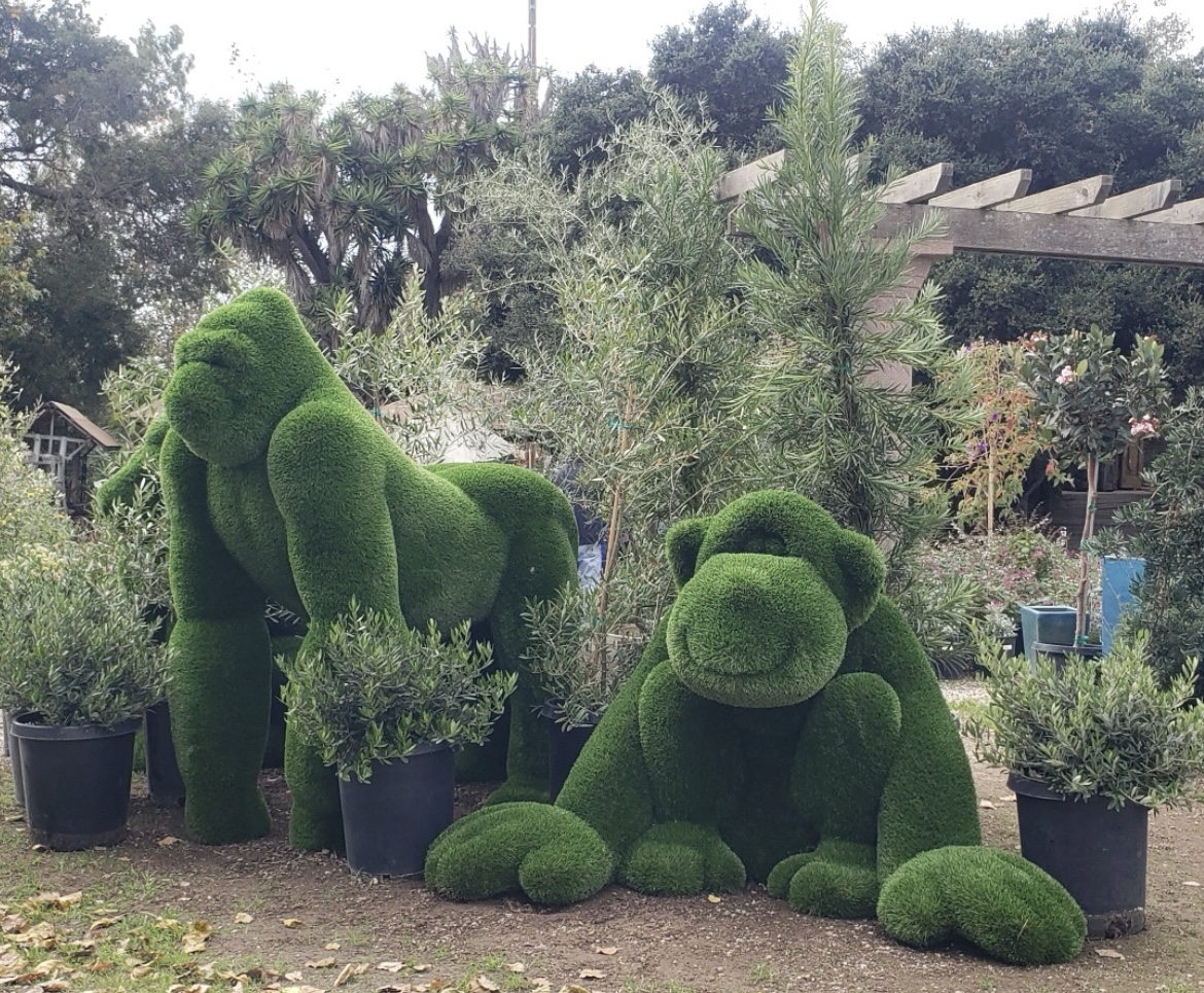 In the realm of new and unusual style choices, my friend Jerry Galanti of EcoLawn introduced me to these topiaries available at Island View and La Sumida nurseries. Jerry met the rep for Bacho, the company that produces the topiaries. They offer fruit, flora, and fauna of all types, including a pair of swans, a complete chess set, and a gorilla that stands over six feet tall. As Jerry pointed out, the topiaries are “an interesting approach to garden decor” and extremely Instagram-worthy!