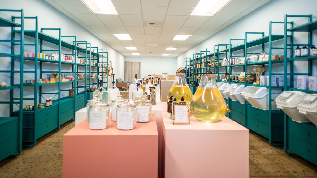 Both acknowledge their collective hurdles — cost, convenience, education, and sourcing — and the need to stick together. Speaking of Ozhelevskiy and others, Voorhees is proud that “most refill stores are single-owner women. We rely on each other, and I consider her a friend. She’s helped me out, I can help her out, and that’s great.” Ozhelevskiy agrees, adding, “To be able to work with someone who’s on the same page as me, who wants to build a bigger community, is important. I’m very thankful that we have each other to lean on.”