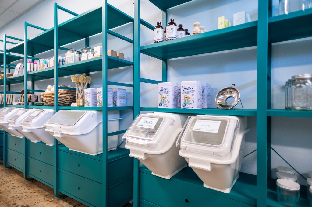 Naturally, all this is difficult to distill into an elevator pitch, but Voorhees did just that as a passerby meandered into the shop before opening hours. “So, what are you?” the woman asked. “We’re a refillery,” Voorhees said. “We have all of the household items you would usually find at other stores, except they come in sustainable packaging, and we also sell these items in bulk by the ounce.” The woman thought I was interviewing Voorhees for a job, not a newspaper. “You should hire her,” she told me. Ma’am, I’ll put in a good word.