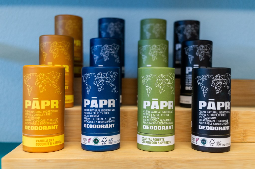Voorhees and Ozhelevskiy pointed out the few unavoidable places plastic sneaks into their shops, namely in pump tops, sunscreen bottles, and covers for local art prints. (I asked Ozhelevskiy if local artists are working with reusable materials, and while we need to look deeper into that one, she spoke highly of a workshop where she made her own paper. What a world.) Neither refuse plastic containers — “no judgment, just less packaging,” as Voorhees puts it. “There’s a famous quote: ‘We don’t need one person doing a million things. We need a million people doing one thing.’”