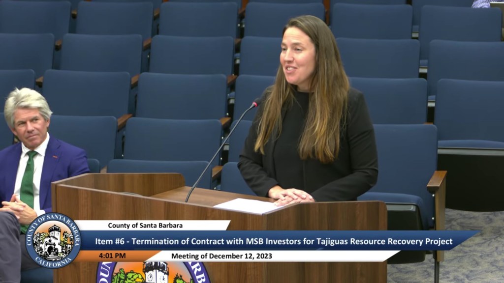 Ana Citrin, on the legal team for the Gaviota Coast Conservancy, argued that the county take an urgent approach, given the substantial investment it had made in Tajiguas. The county spent $124 million building the new facilities and had paid MSB $33 million in costs, fees, and cash-flow assistance.
