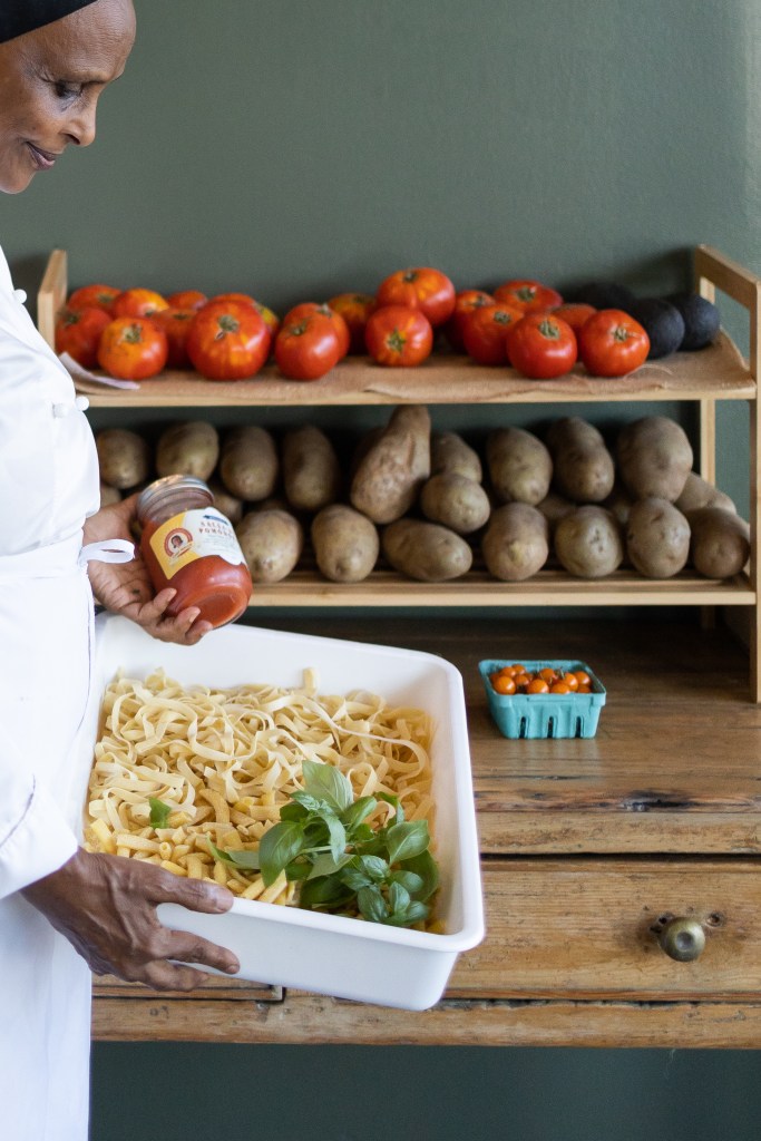 “The only thing we don’t have is silverware and white tablecloths,” she says about the new, humble location. “But it’s the same pasta. With my ego, I have to provide the same quality.” Of course, she makes the pasta fresh, and it comes with classics like carbonara, all’arrabbiata, bolognese, or chicken vodka sauce.