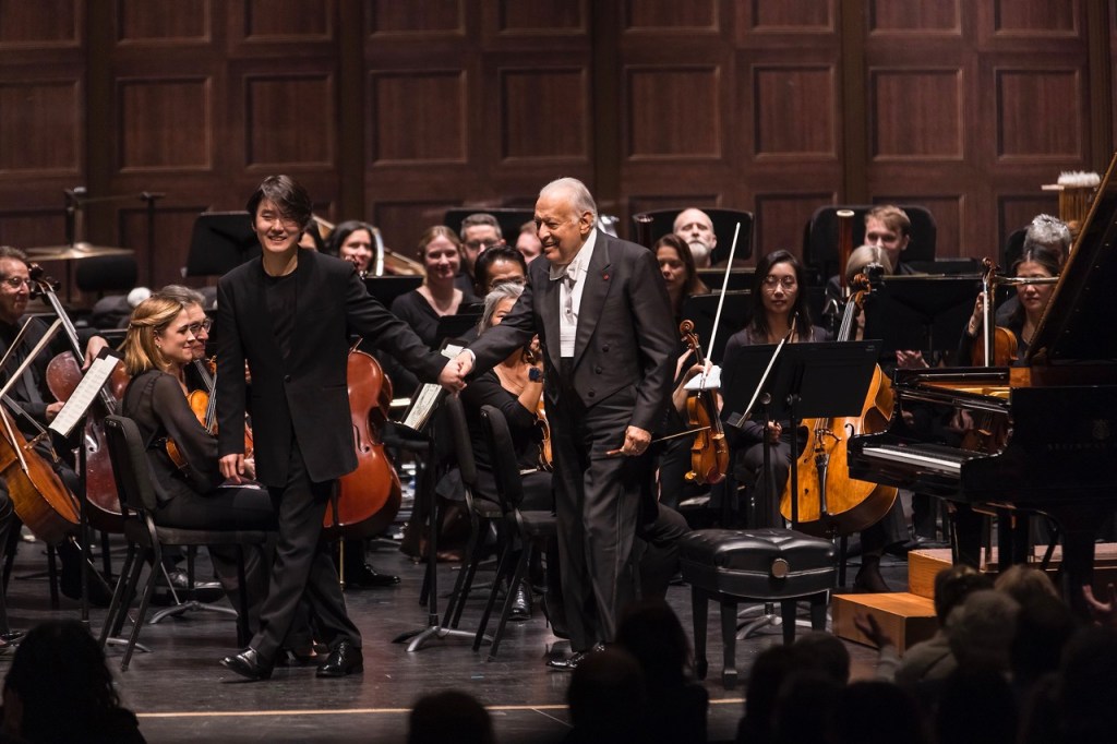 Cho’s dual appearance in town allowed for a fascinating, and rare, compare-contrast vantage view of his talents in both modes. At Campbell Hall, the highlight was his intricate treatment of Ravel: in the Schumann thicket, in taut collusion with the Mehta-led ensemble, the pianist brought a bracing clarity without short-changing bravado in proper, restrained measure. Cho’s moment in a more personalized spotlight came with his solo encore, a suitable gush of romantic fury on Chopin’s “Revolutionary Étude.”